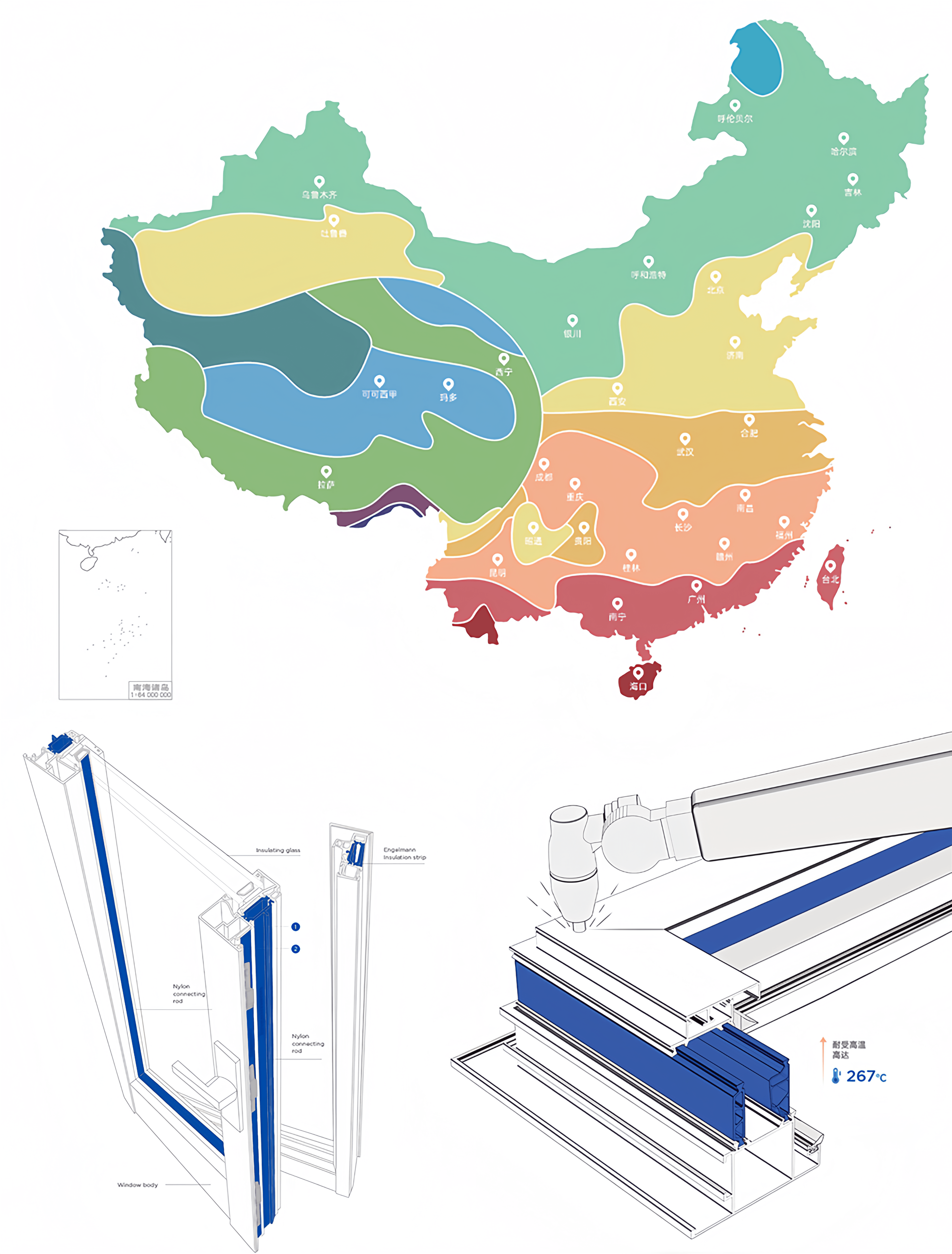 多种产品协同提升系统的隔热性能,室内热量往往通过窗户、门和外墙等部位散失。若缺乏有效的隔热保温措施,将导致能源的大量浪费。在这种情况下,采用高精度绝缘隔热型材成为关键,其卓越的性能能够在节能减耗方面发挥重要作用,担当起节约能源的重任。